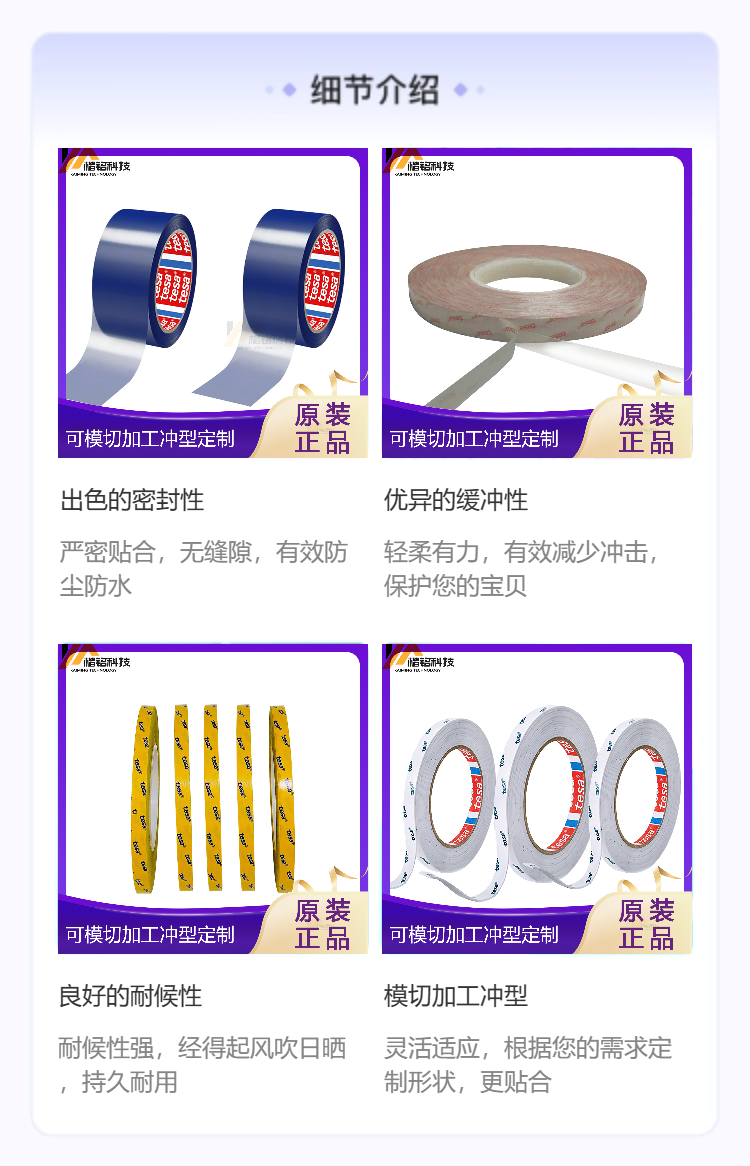 從實驗室到產(chǎn)線:TESA雙面膠的可靠驗證路徑德莎對[德莎雙面膠]系列產(chǎn)品的驗證體系遠超行業(yè)常規(guī)。以TESA62624為例,其認證包含三重維度:基礎(chǔ)物性測試(ASTM D3330初粘/持粘、D1000剝離強度)、環(huán)境耐受性(85℃/85%RH 1000小時老化后剝離力保持率>92%)、以及真實工況模擬(如手機跌落測試中模擬中框與電池倉的動態(tài)沖擊粘接失效閾值)。這些數(shù)據(jù)并非孤立存在,而是嵌入德莎全球應(yīng)用工程師數(shù)據(jù)庫,可為客戶提供定制化選型建議。深圳市楷銘科技有限公司作為德莎華南區(qū)認證分銷伙伴,不僅提供原裝zhengpin保障,更配備具備FAE資質(zhì)的技術(shù)團隊,能基于客戶具體基材(如陽極氧化鋁、PC+ABS合金、柔性PI膜)匹配最優(yōu)離型紙類型與貼合壓力參數(shù),真正實現(xiàn)“膠帶即方案”。